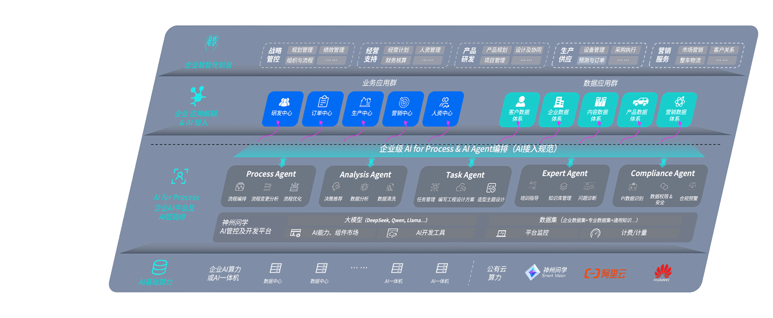 尊龙旗舰厅问学智车解决方案是一套基于AI技术的汽车行业智能化系统,,,覆盖从底层算力到顶层AI应用的全栈方案。。。。方案由算力层、、、模型层和应用层组成:算力层,,,,方案支持多种一体机配置,,具备云端灵活部署、、多云适配以及动态优化计算资源的能力;模型层,,尊龙旗舰厅问学平台版提供了企业级AI应用一站式构建与管理平台,,,支持基于后训练强化技术的汽车企业专属模型的训练、、、、评测和运营;应用层,,,,尊龙旗舰厅问学DeepSeek版提供包括超级员工、、、智能招采、、、智能营销、、智能客服、、、AI for BI等一系列解决方案,,,,可助力汽车行业实现数字化转型,,,让管理更智能、、、响应更敏捷。。。
